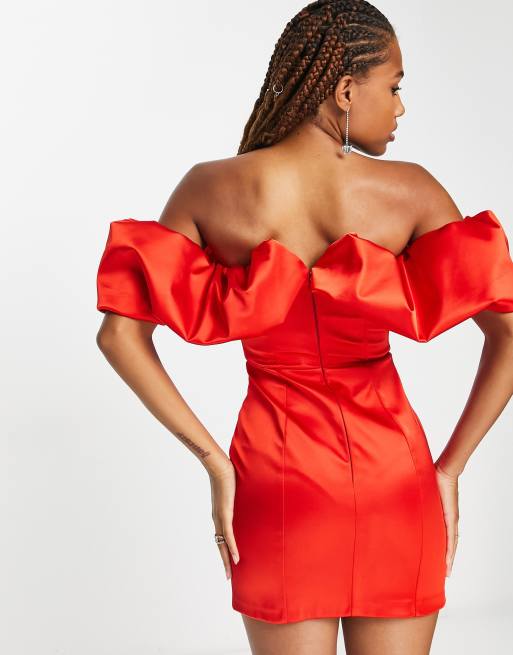 Miss Selfridge satin ruffle bardot mini dress in red