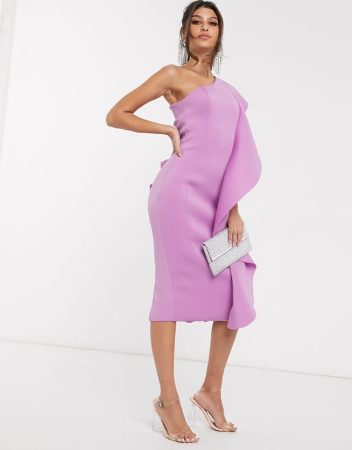 Lavish alice one shoulder clearance scuba exaggerated frill midi dress