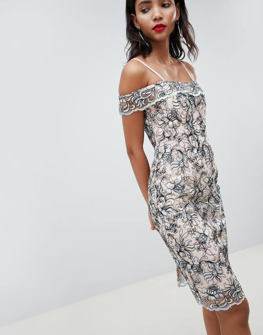 Bardot embroidered lace clearance dress