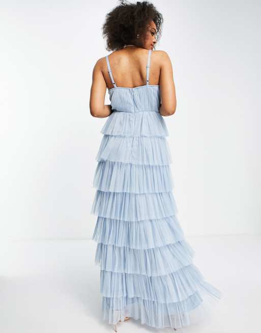 Anaya With Love maxi dress with tiered skirt in pale blue tulle ASOS