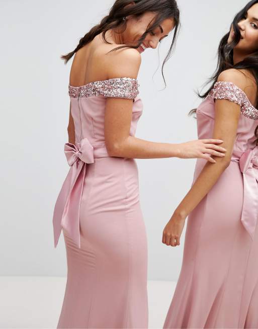 Maya tall bardot sequin detail clearance maxi dress with bow back detail