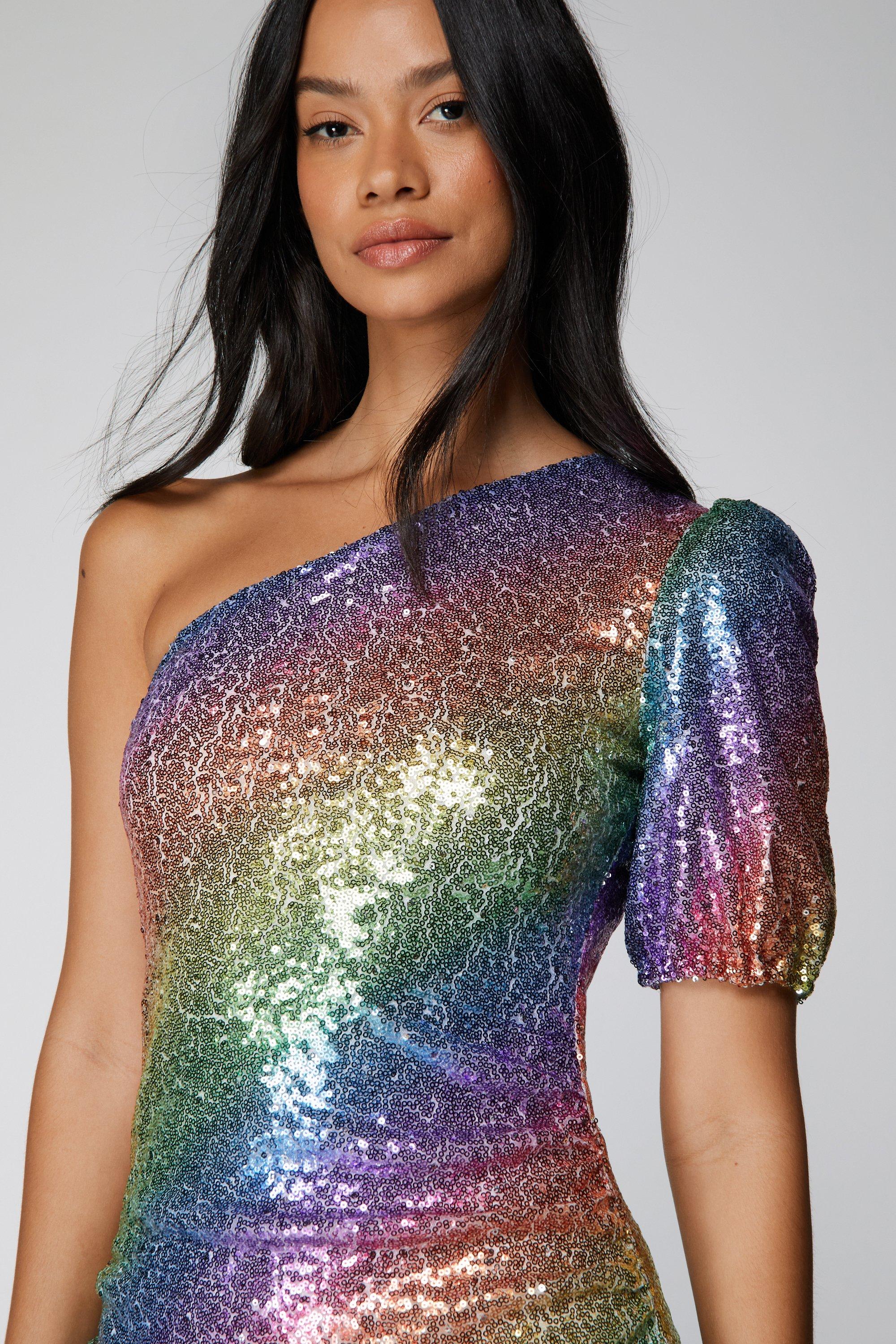 One shoulder rainbow clearance dress, Rainbow Disco One Shoulder Dress Limited clearance
