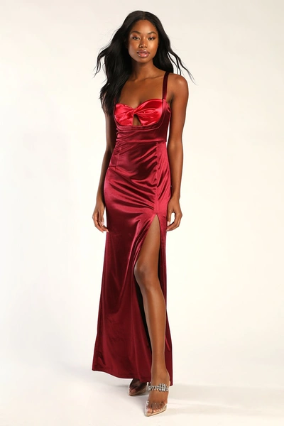 Lulus Gorgeous Arrival Burgundy And Red Color Block Satin Maxi
