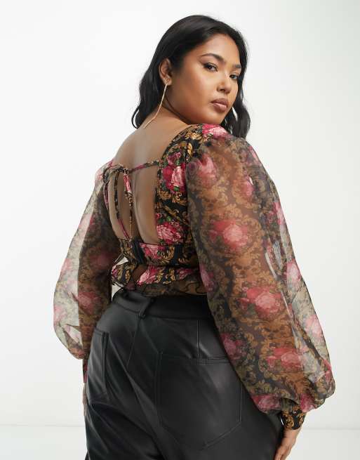 ASOS DESIGN Curve Melody corset with chiffon sleeves in baroque ASOS
