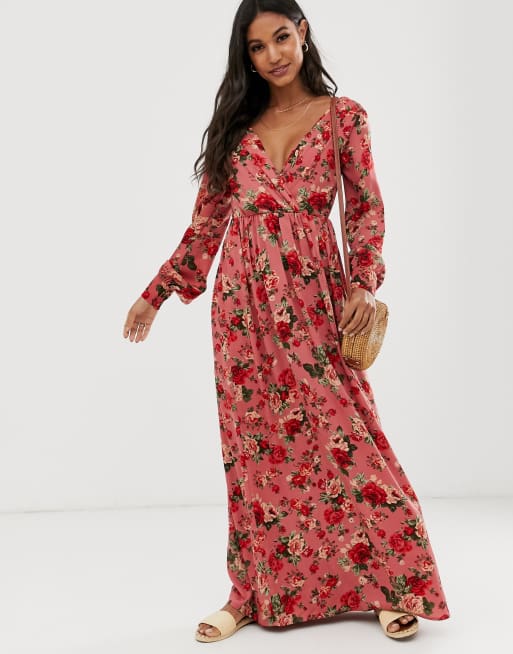 Vila Floral Wrap Maxi Dress Adobe Rose Size 10 Bnwt eBay