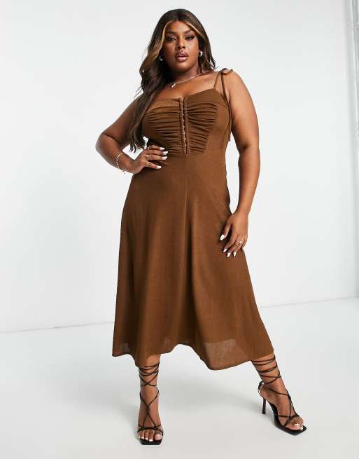 Strappy clearance tea dress, ASOS DESIGN textured strappy midi tea dress with hook and eye detail in sage green clearance