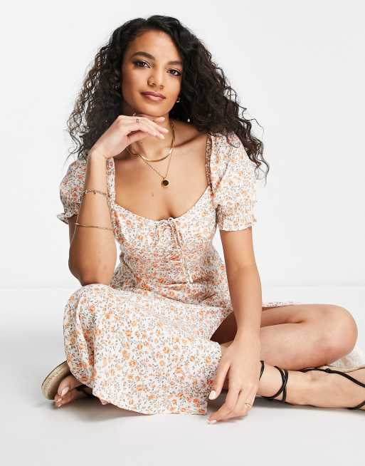 Forever New tie bust split midi tea dress in ivory floral ASOS