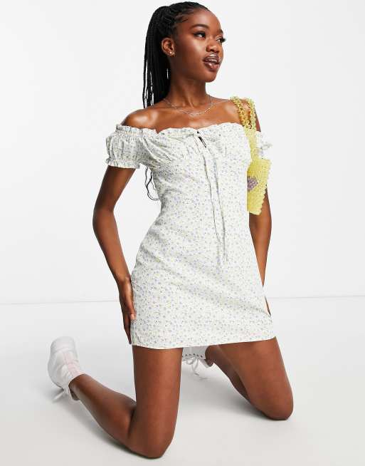 Glamorous Petite milkmaid mini tea dress in cream spring floral