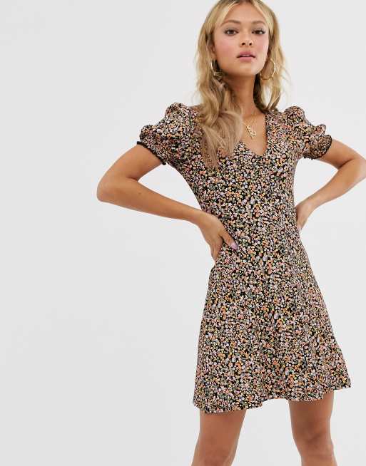 Miss Selfridge tea dress with shirred sleeves in ditsy floral