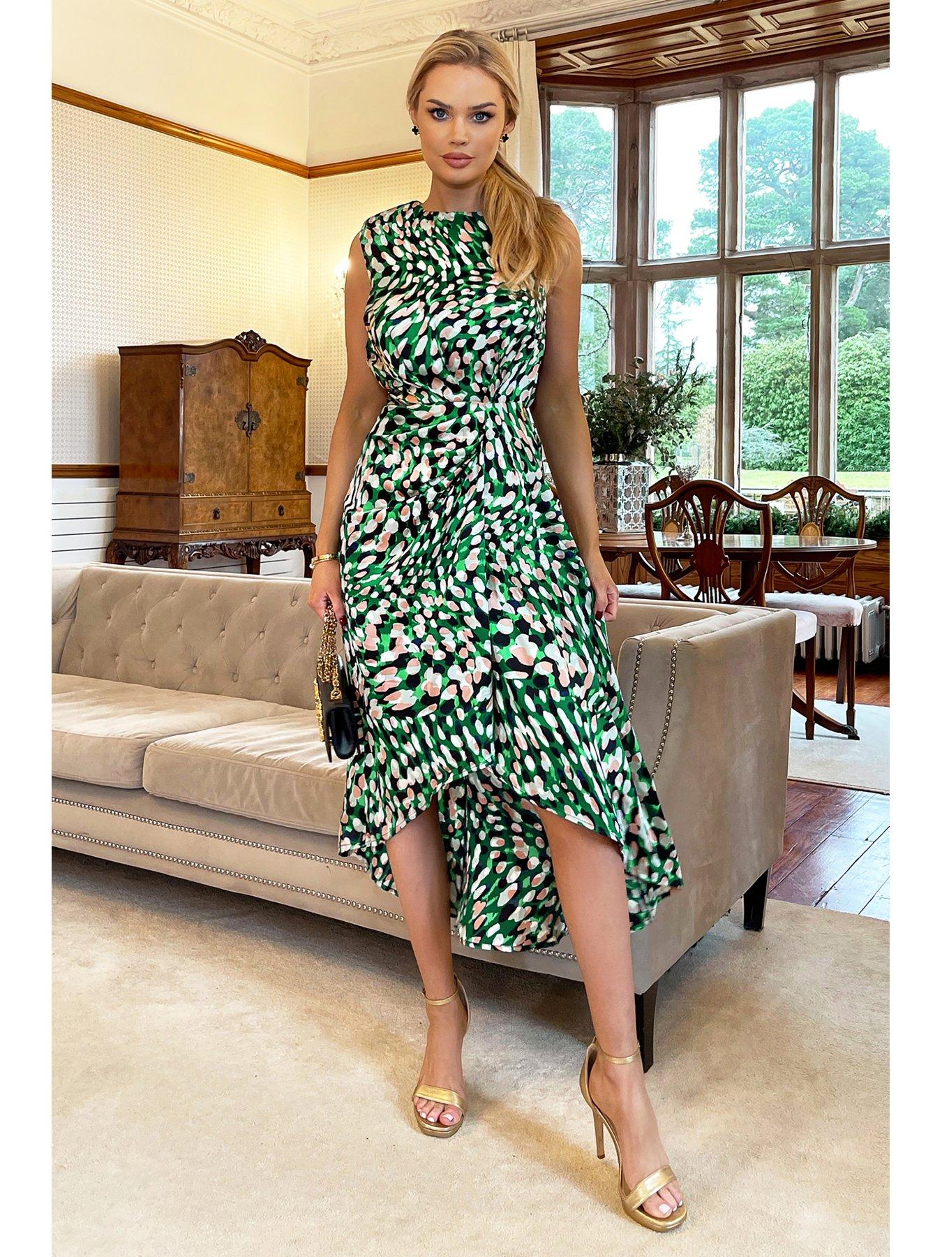 Ax paris chiffon clearance printed dress, AX Paris Pink Orange Floral Print Belted Wrap Midi Dress Freemans clearance