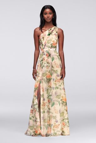 Long Chiffon Dress with Asymmetric Neckline David s Bridal