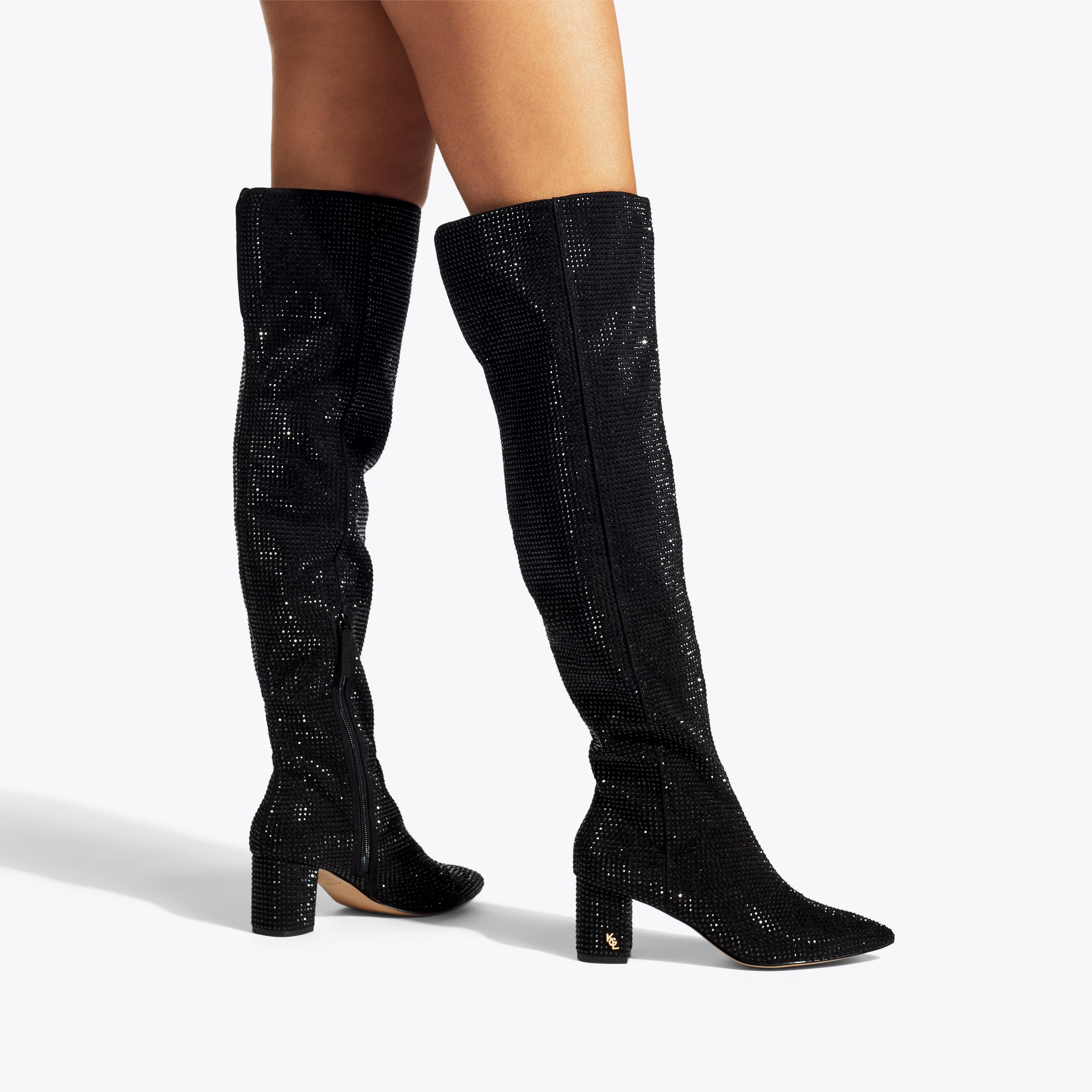 BURLINGTON OTK BOOT Black Fabric Crystal Over The Knee Boots by