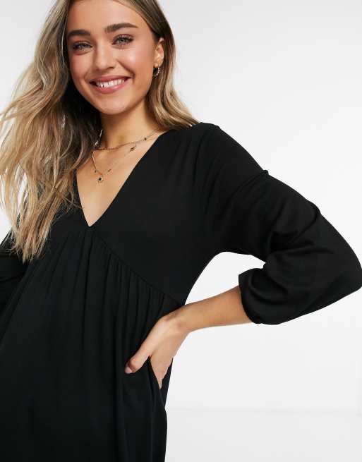 Pieces Tall exclusive textured v neck smock mini dress in black ASOS