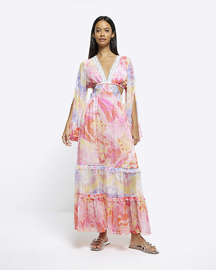 Pink chiffon beach clearance dress, Pink Chiffon Beach Dress Dinner Dress Wedding Dress clearance