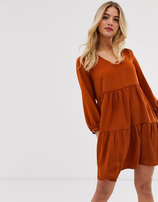 Rust clearance smock dress, Tiered Mini Smock Dress in Rust White Floral clearance