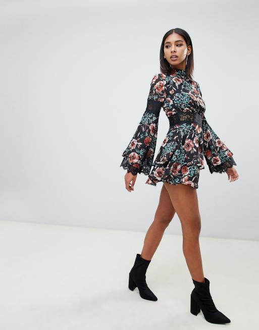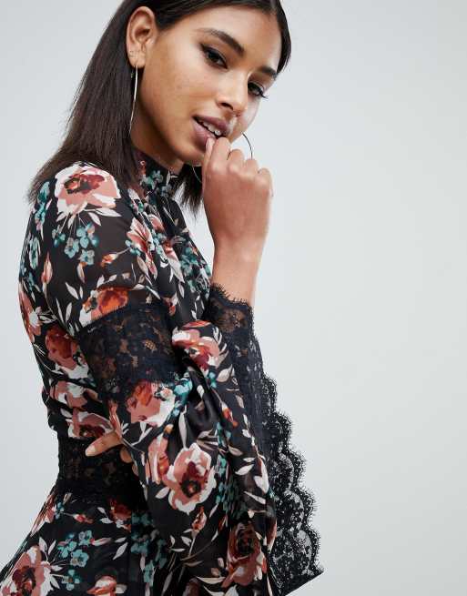 Missguided high neck lace tea dress in floral in multi ASOS