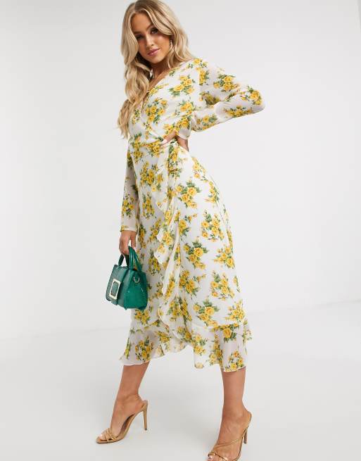 Missguided ruffle hem wrap midi tea dress in floral print