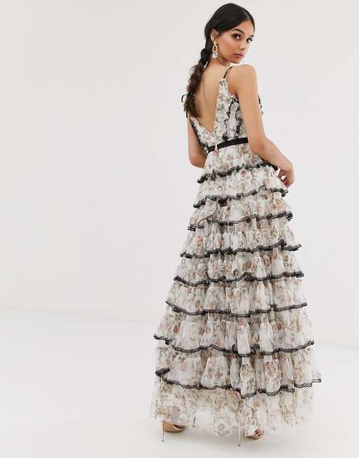Needle and thread tiered floral clearance maxi dress, Dust Yellow Floral Embroidered Tiered Maxi Dress Needle and clearance