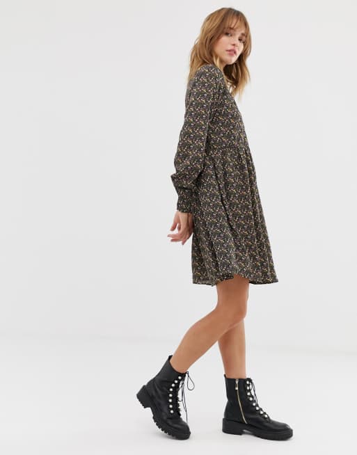 Jdy ditsy printed clearance smock dress, JDY Women s Jdypiper L S Short Dress WVN Noos Black Aop spectra clearance