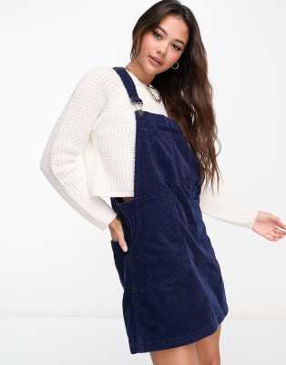 DTT Lucine cord pinafore dress with pockets in navy