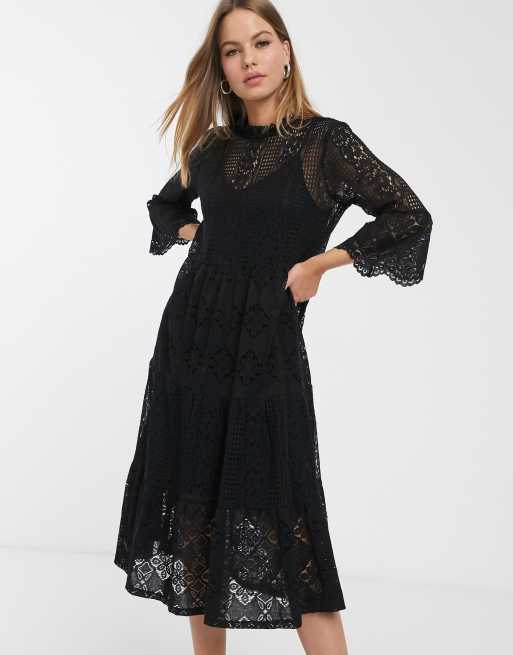 Vero Moda lace midi dress with high neck in black ASOS