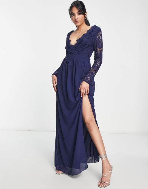 TFNC Bridesmaid open back lace maxi dress in navy blue