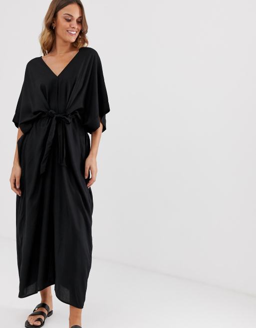 Monki tie waist midi kaftan in black
