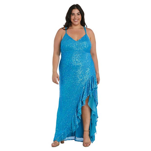 Juniors Plus Size Morgan and Co Ruffled Long Evening Gown