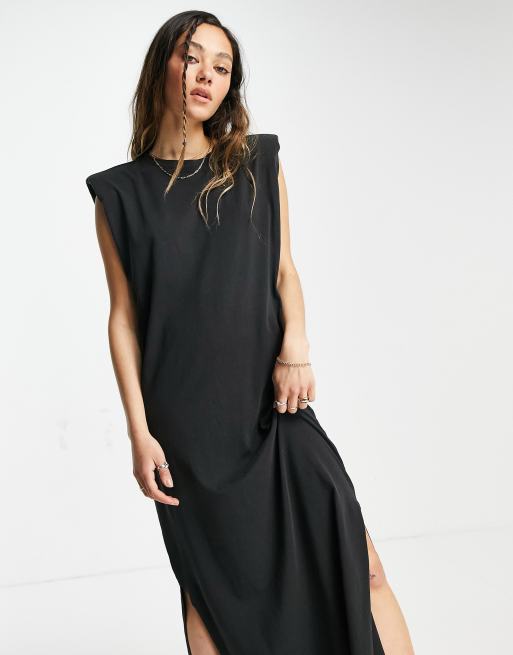 Black Sleeveless Cotton Jersey Midi Summer Dress