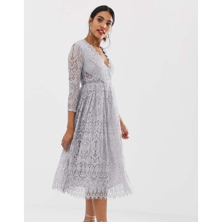 Asos design lace long clearance sleeve midi prom dress