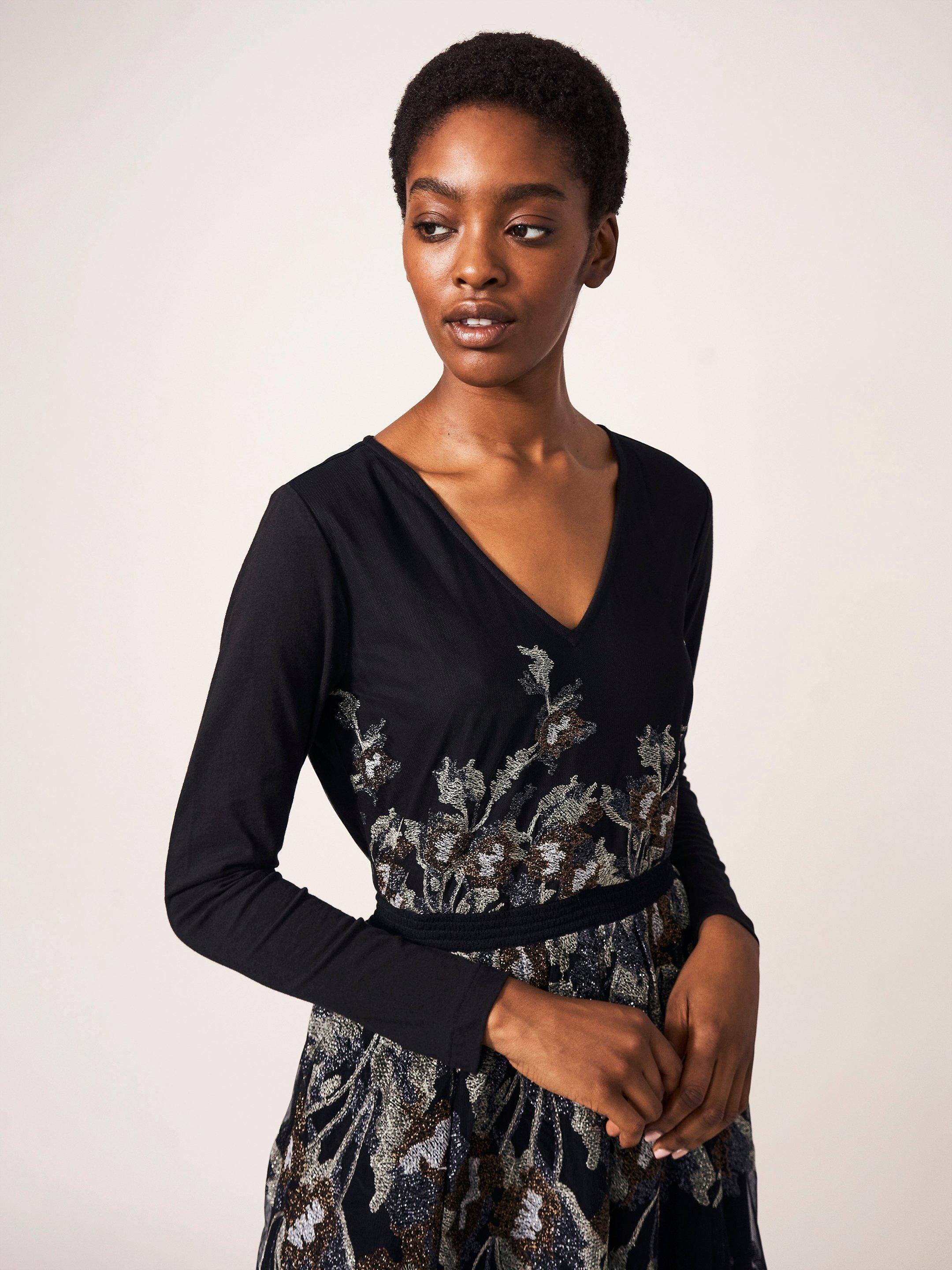 Black embroidered dress clearance long sleeve, Embroidered Mesh Dress in BLACK MULTI White Stuff clearance