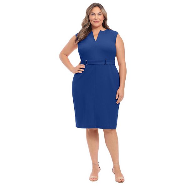 Plus Size London Times Buckle Waist Midi Sheath Dress