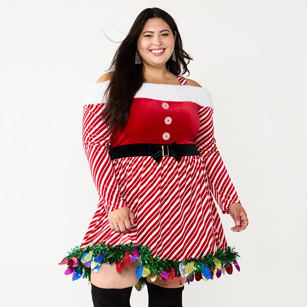 Christmas dresses at clearance kohls, Juniors Plus Size Born Famous Christmas Candy Cane Fit Flare Dress clearance