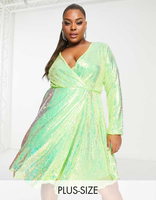 Collective the Label Curve exclusive sequin wrap mini dress in iridescent lime
