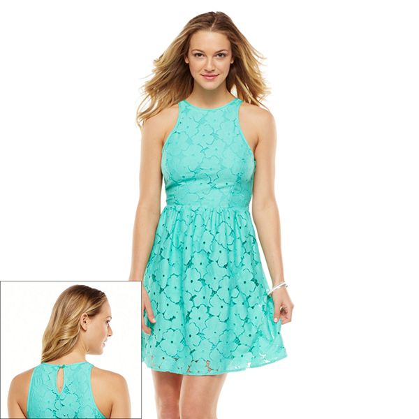 LC Lauren Conrad Floral Lace Fit Flare Dress Women s