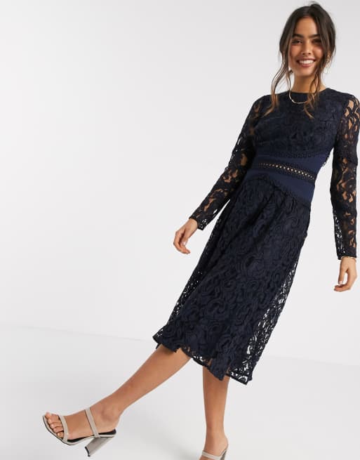 ASOS DESIGN lace long sleeve midi prom dress ASOS