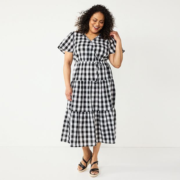 Plus Size Croft Barrow Checked Surplice Midi Dress