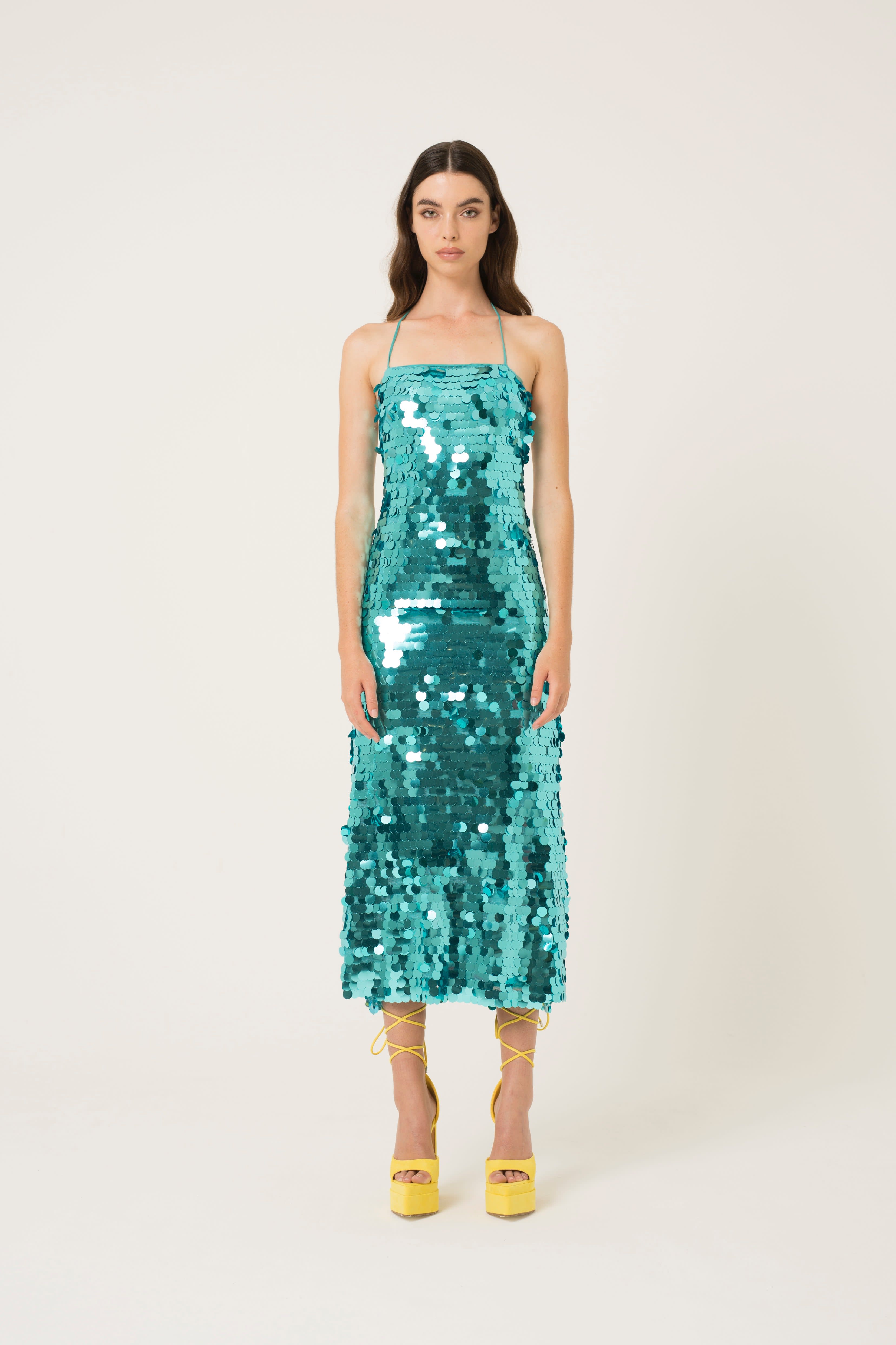 Aqua blue sequin clearance dress