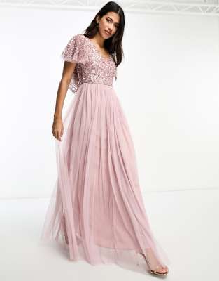 Beauut Bridesmaid embellished maxi dress with flutter detail in