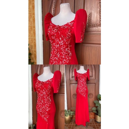 Red filipiniana clearance, Hot sell Red Filipiniana Serpentine Long Gown clearance