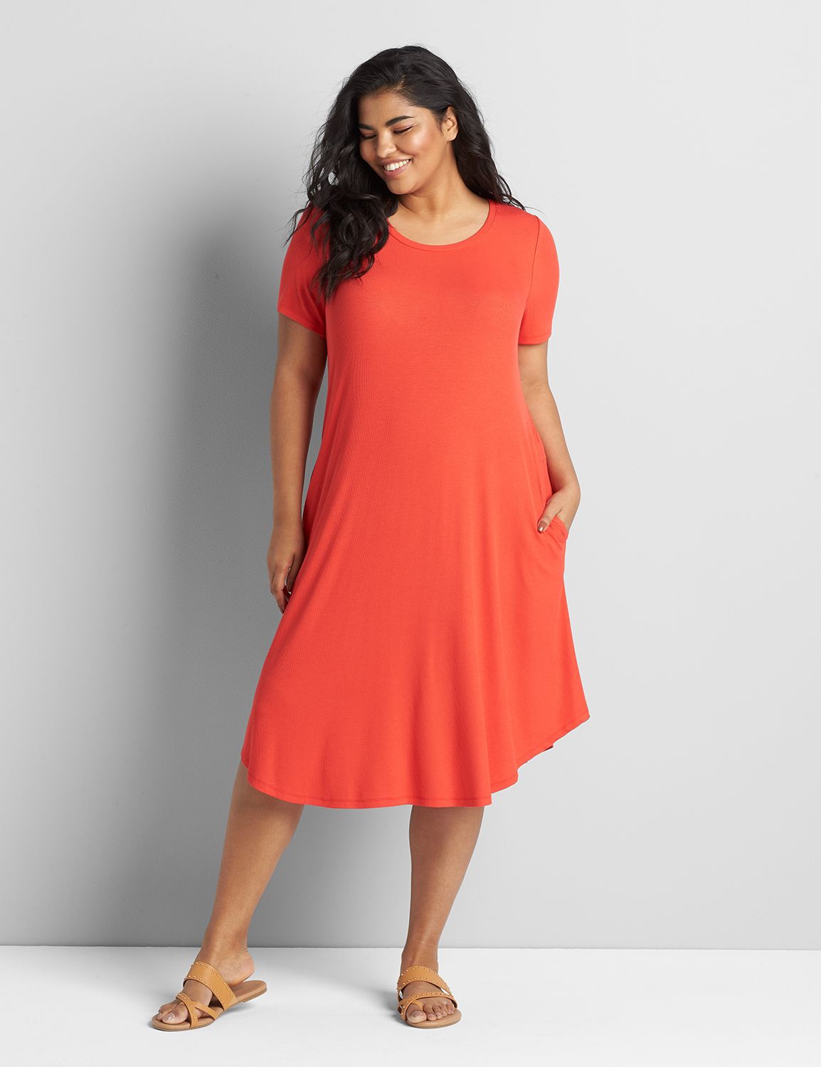 Flutter Sleeve V Neck Knit Swing Dress LaneBryant