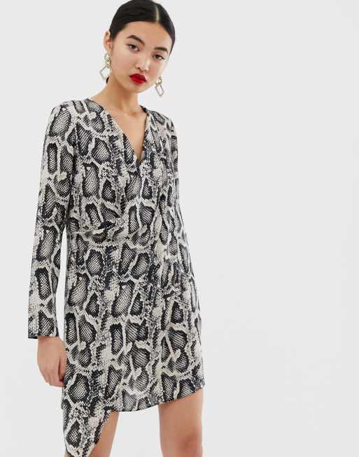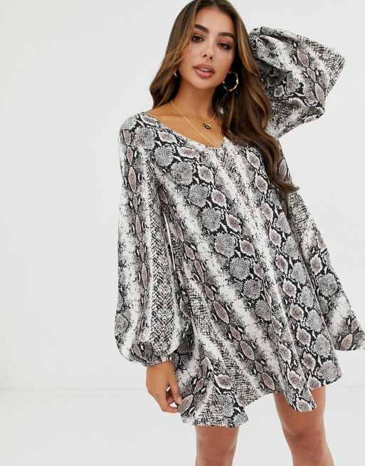 ASOS DESIGN textured mini v neck swing dress in snake print