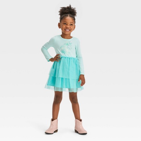 Toddler Girls Unicorn Long Sleeve Dress Cat Jack Aqua Blue