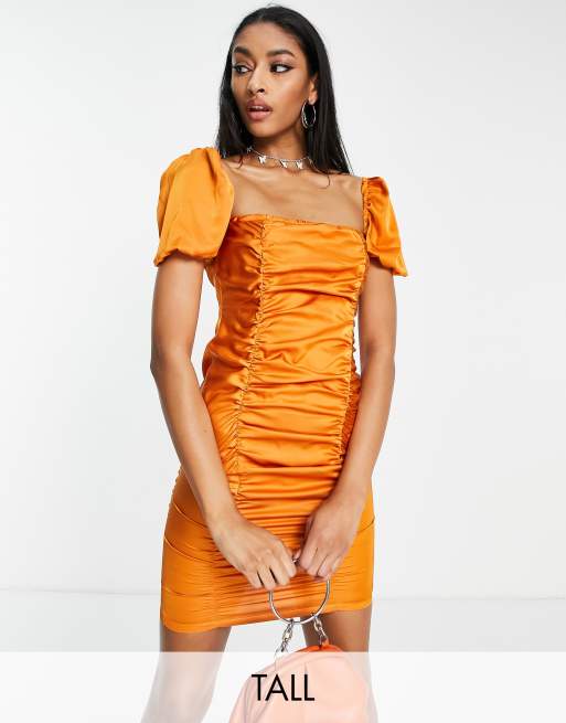 Orange square neck clearance dress, JIUE Summer Dresses Women S Orange Plain Square Neck Shoulder Tie clearance