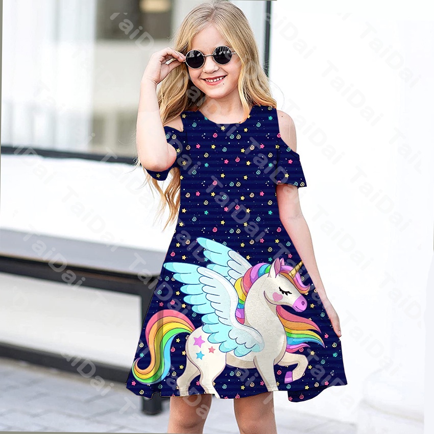 Kids Little Girls Dress unicorn Print Above Knee Short Sleeve