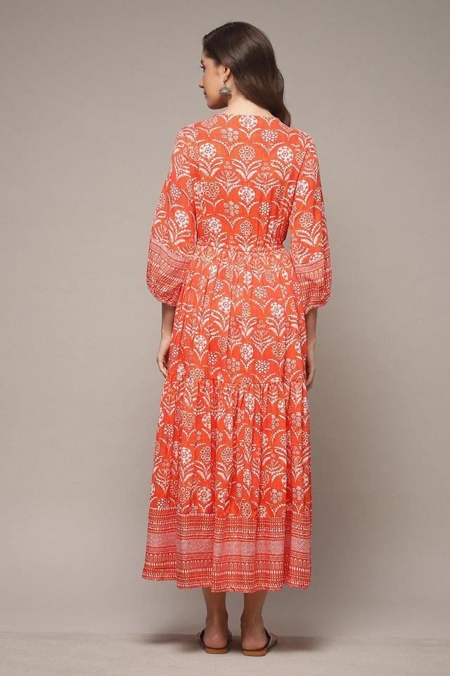 Biba Orange Cotton Printed A Line Dress
