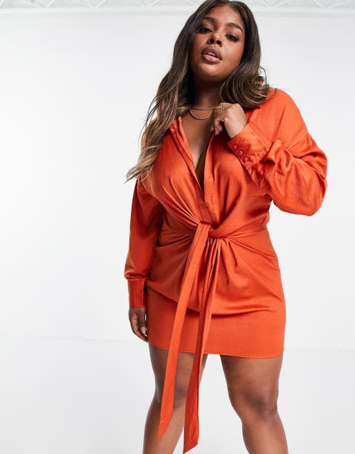 In The Style exclusive satin cowl neck midi dress in orange ASOS
