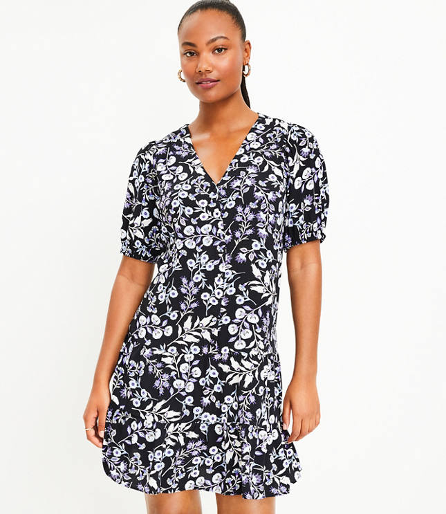 NWT Ann Taylor LOFT Floral Flounce Swing Dress Windblown Grey X