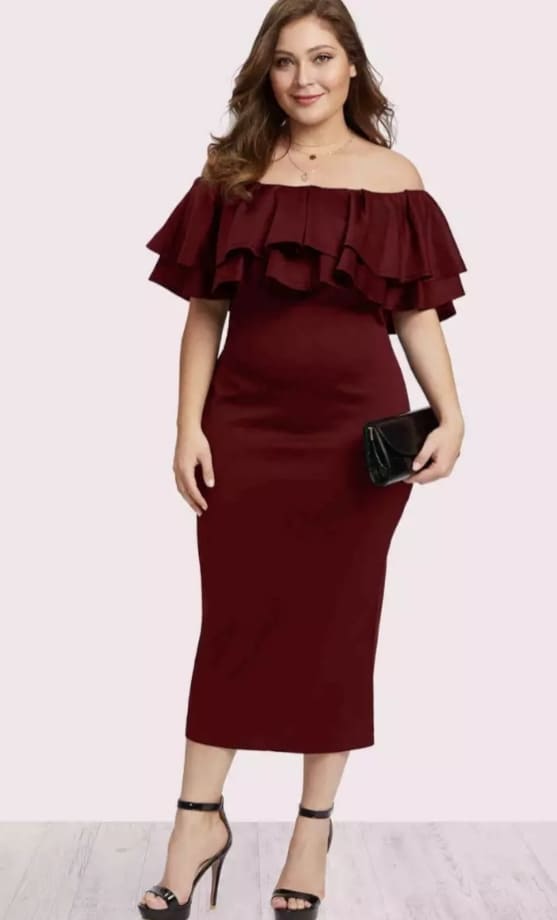 Maroon casual dress clearance for wedding, READY STOCK P02 Classy Chic and Elegant Casual Plus Size Big Size Dress Wedding Birthday Anniv clearance