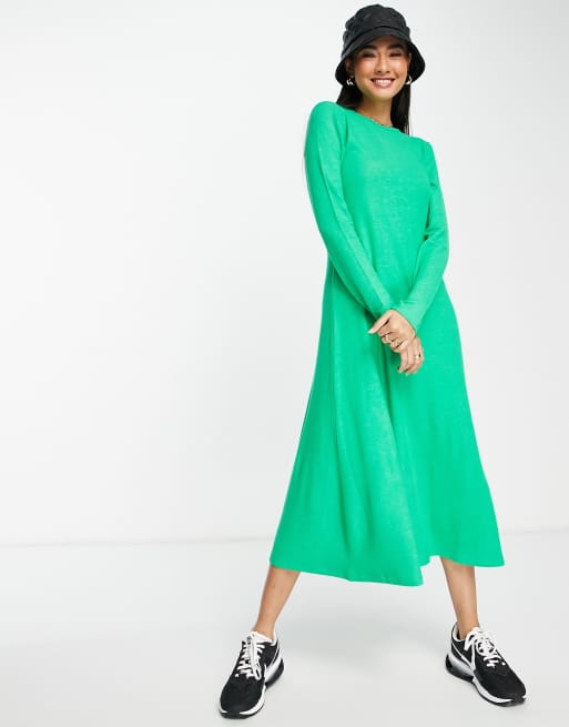 ASOS DESIGN super soft long sleeve midi swing dress in bright green